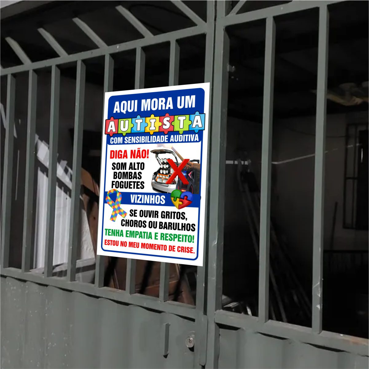 A Placa de Sinalização Aqui Mora Um Autista com Sensibilidade foi criada para te ajudar onde mais precisa! Na porta da sua casa! Ideal para residências, a Placa de Sinalização Aqui Mora Um Autista com Sensibilidade informa de forma clara e educativa sobre a presença de uma pessoa autista com sensibilidade sensorial, ajudando a evitar ruídos excessivos, buzinas, fogos e promove o respeito e a empatia com o Autista que mora no local.